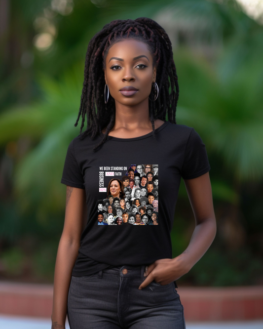 Celebrate the strength, resilience, and unity of Black women who continually show up, both in faith and action. Inspired by the historic moment where 92% of Black women cast their votes in solidarity and vision, this apparel pays homage to the strength and impact of our voices. We Been Standing on Business and Faith isn't just a statement; it's a testament to a journey defined by purpose and unwavering belief. Wear it as a reminder of the power in standing together, leading with purpose, and embodying the courage that shapes futures.
